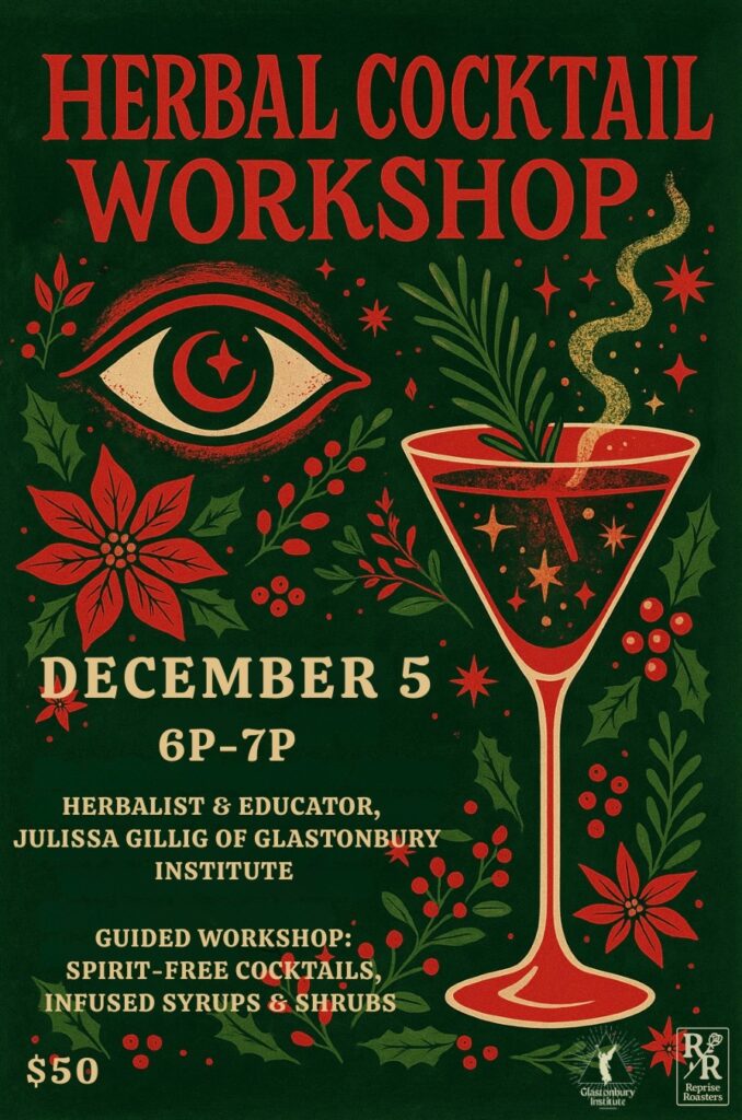 Friday December 7th 6-7:30pm: Herbal Cocktail workshop and crafting event @ Reprise Roasters Evanston Location Register here