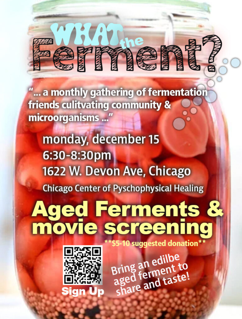 Monday December 15th 6:30-8:30pm. What the Ferment group public event: All welcome! Sign up to register for a screening & ferment share at CCPH.
